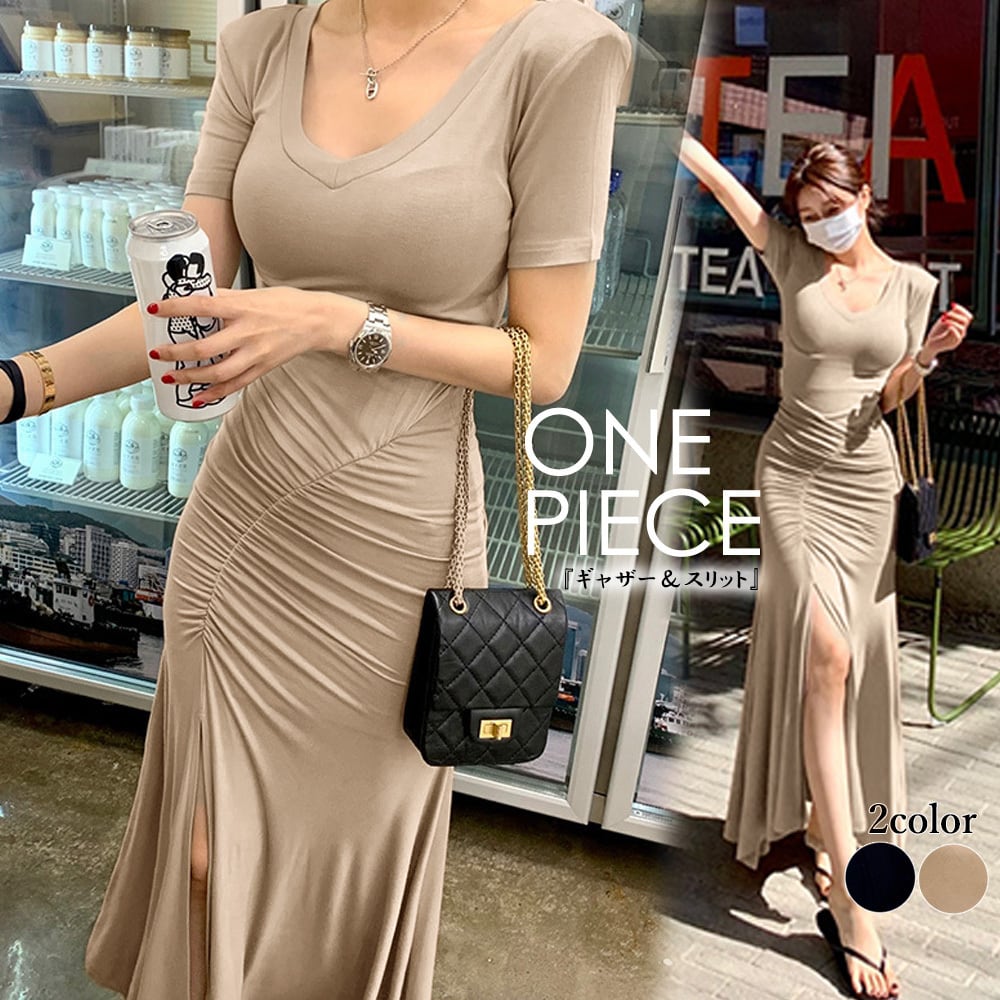 セクシー マーメイドワンピース スリット ロングワンピ 半袖 サマーワンピ 着やせ タイト ワンピース レディース ドレス