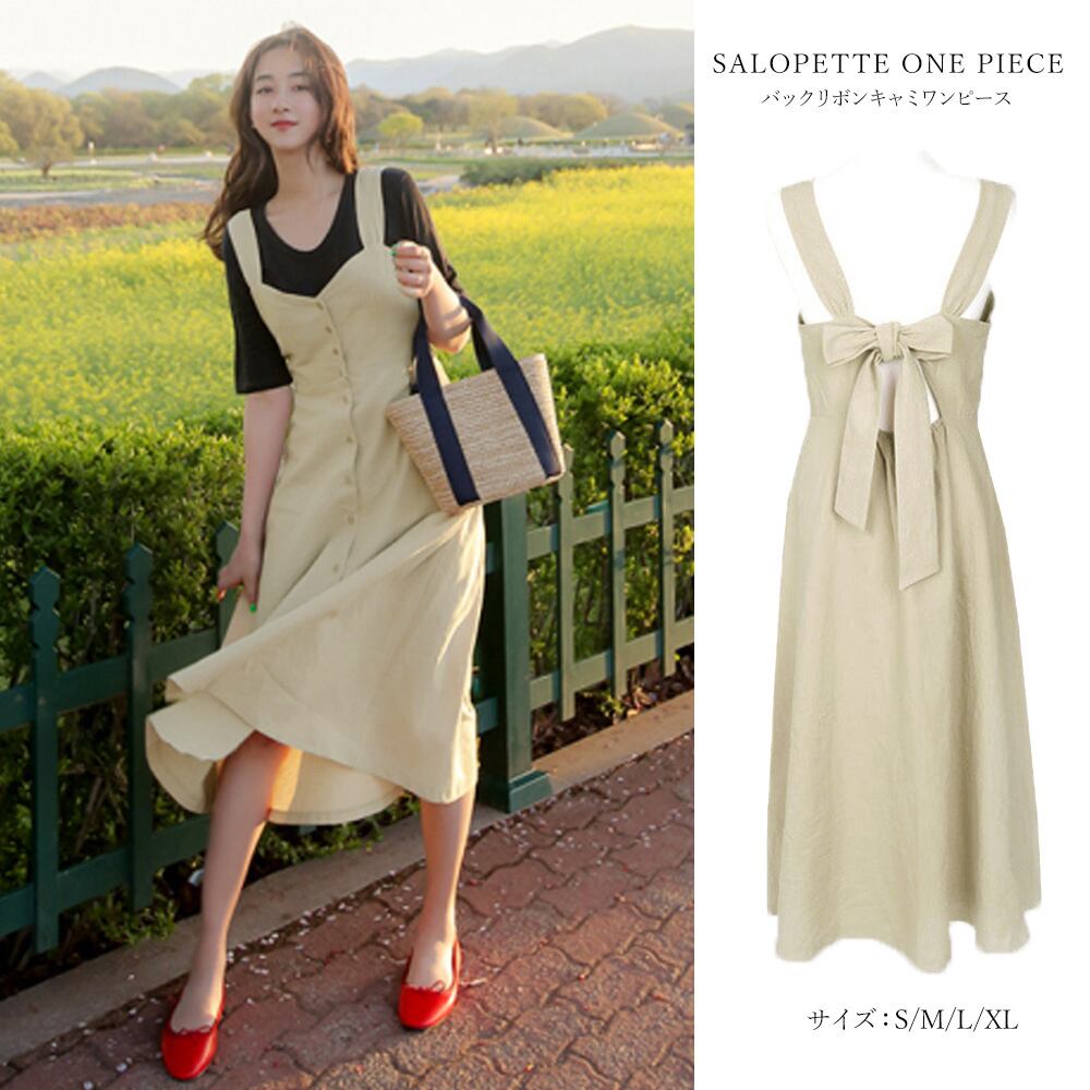 後ろのリボンがポイントになり、可愛いオールインワンです