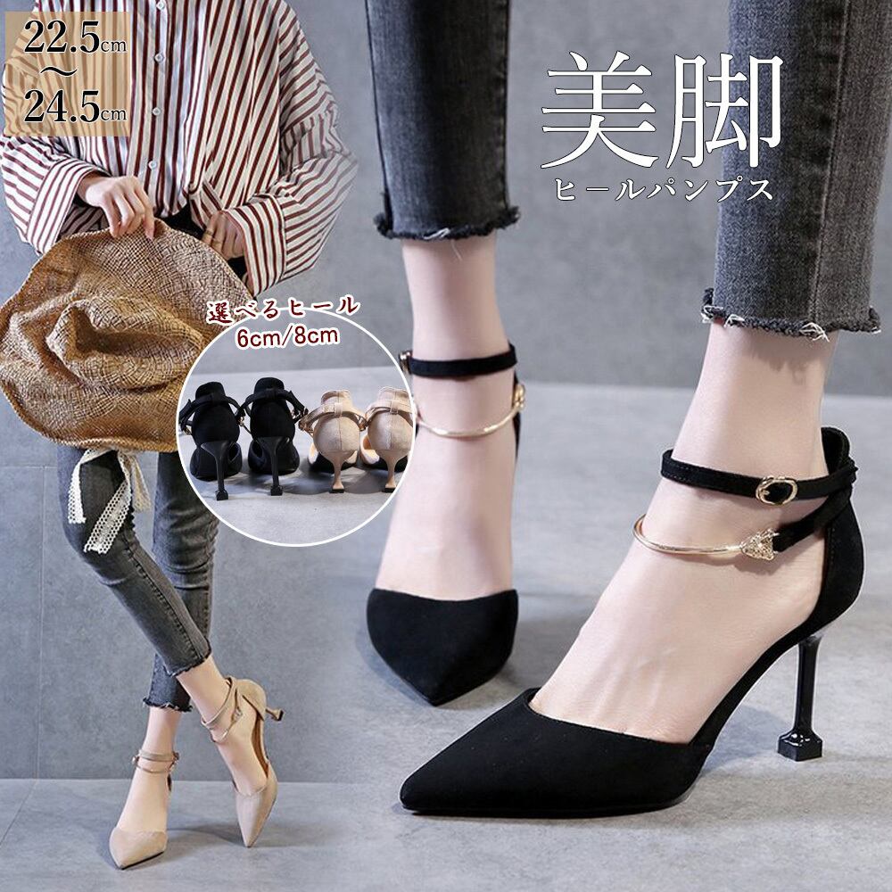 セクシーパンプス アンクルベルト セパレートパンプス アンクルストラップ 大人 きれいめ ポインテッドトゥ ヒール