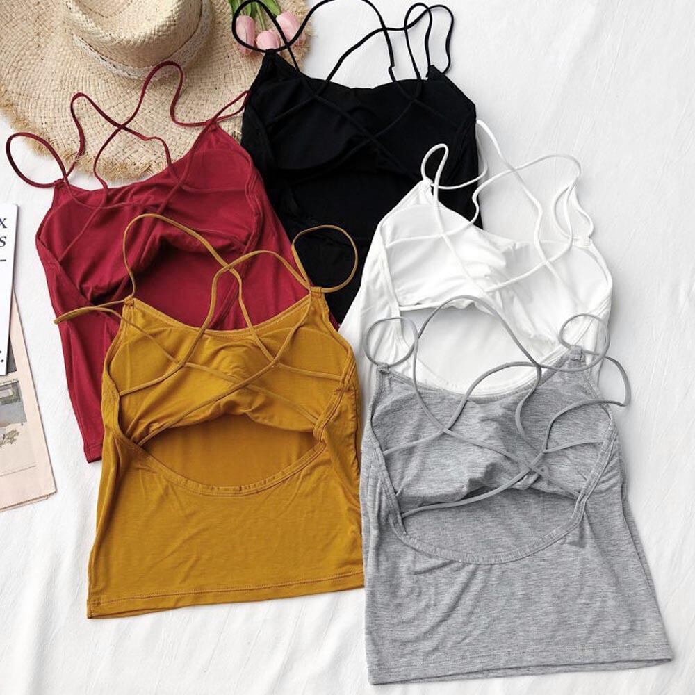 背中あき キャミソール パッド付き キャミソール パッド付き バックオープン バッククロス キャミソール