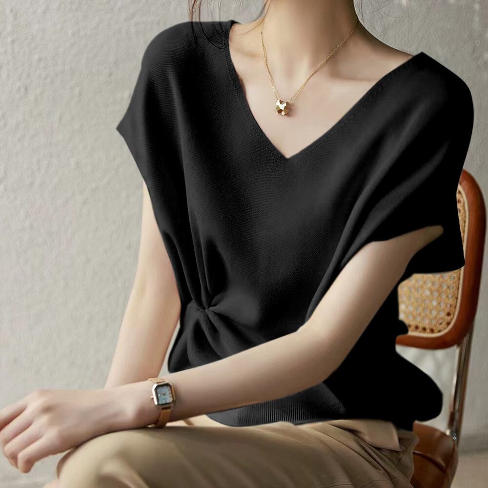 上品 サマーニット ニットトップス レディース 韓国風 感タッチ 半袖 ドロップショルダー