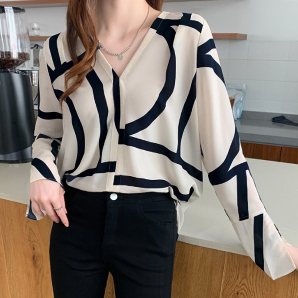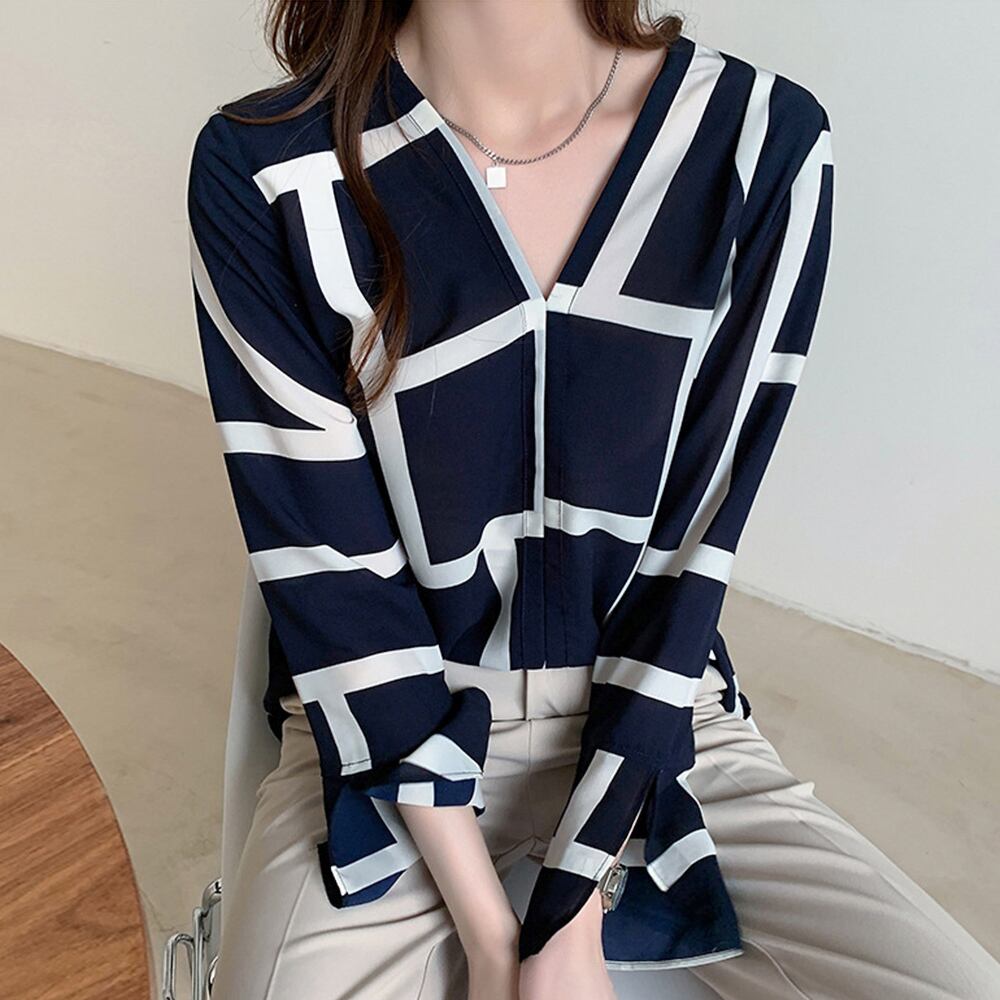 大人ブラウス 長袖 トップス カットソー レディース Vネック 長袖 サイドスリット 上品