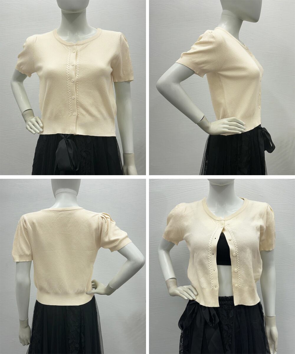 ニットトップス ショート丈 クールネック 薄手 半袖 サマーカーディガン ニットカーディガン きれいめ 無地 大人