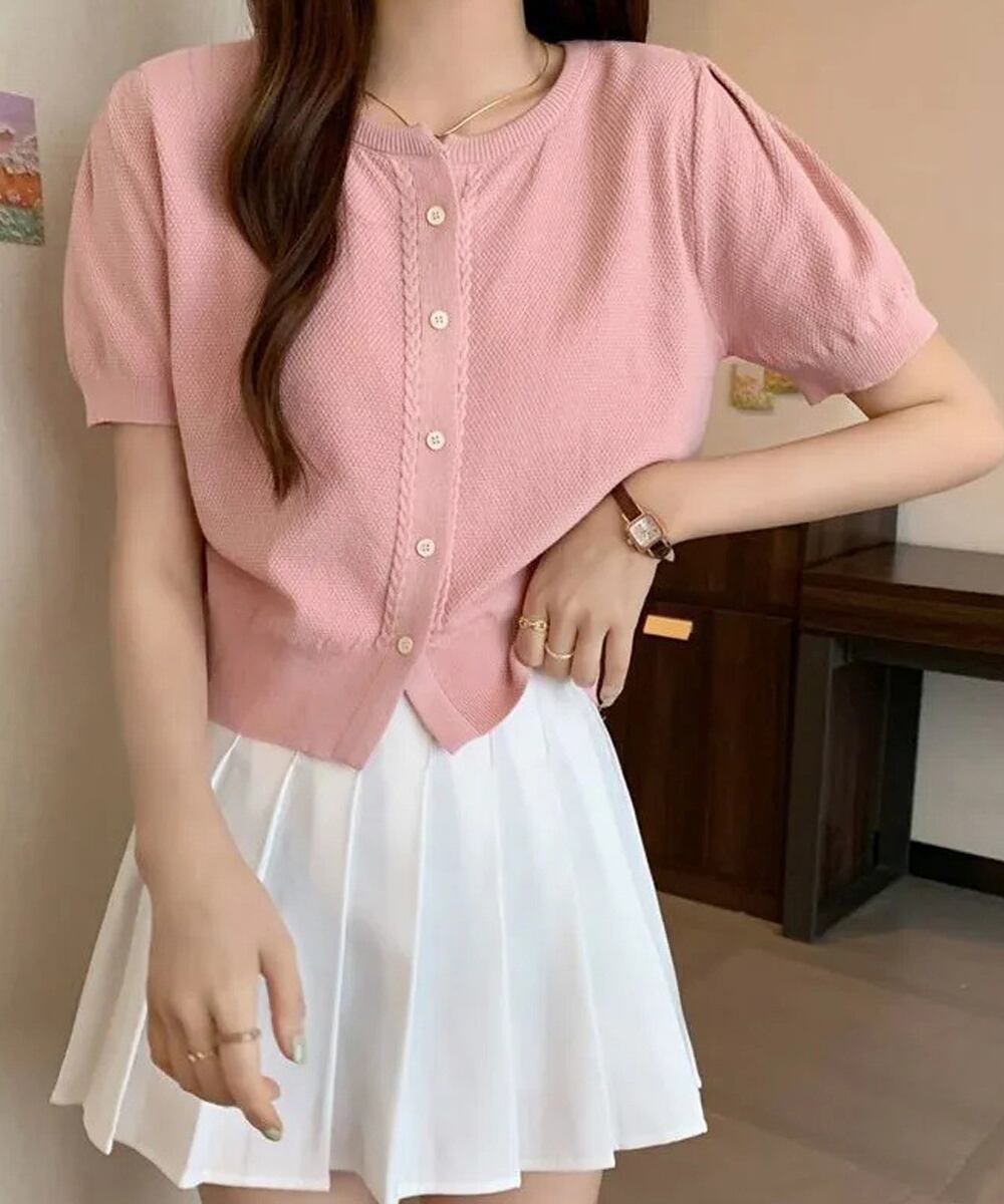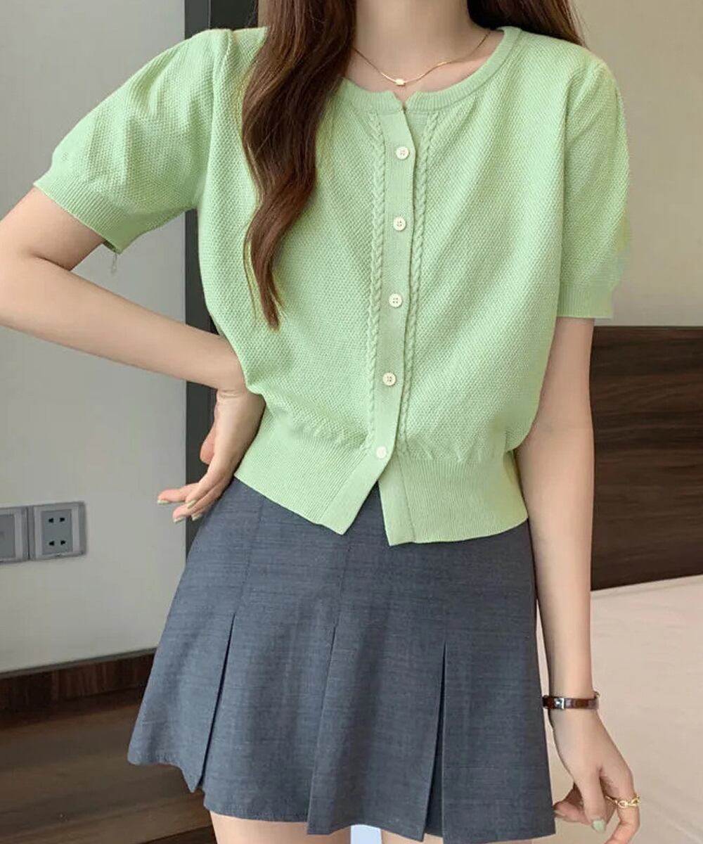 程よく女性らしさを感じさせるクルーネックサマーニットカーディガン