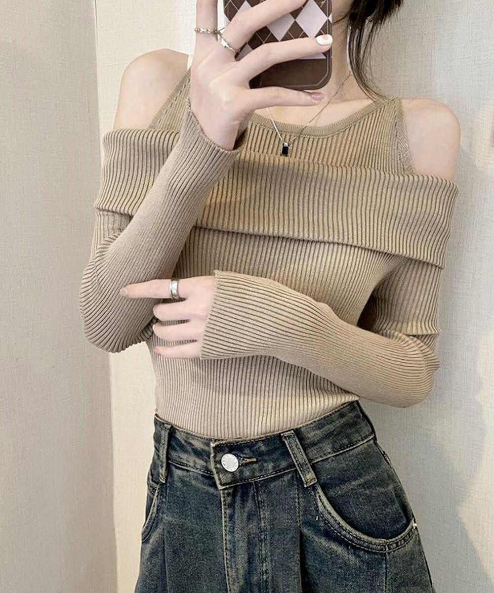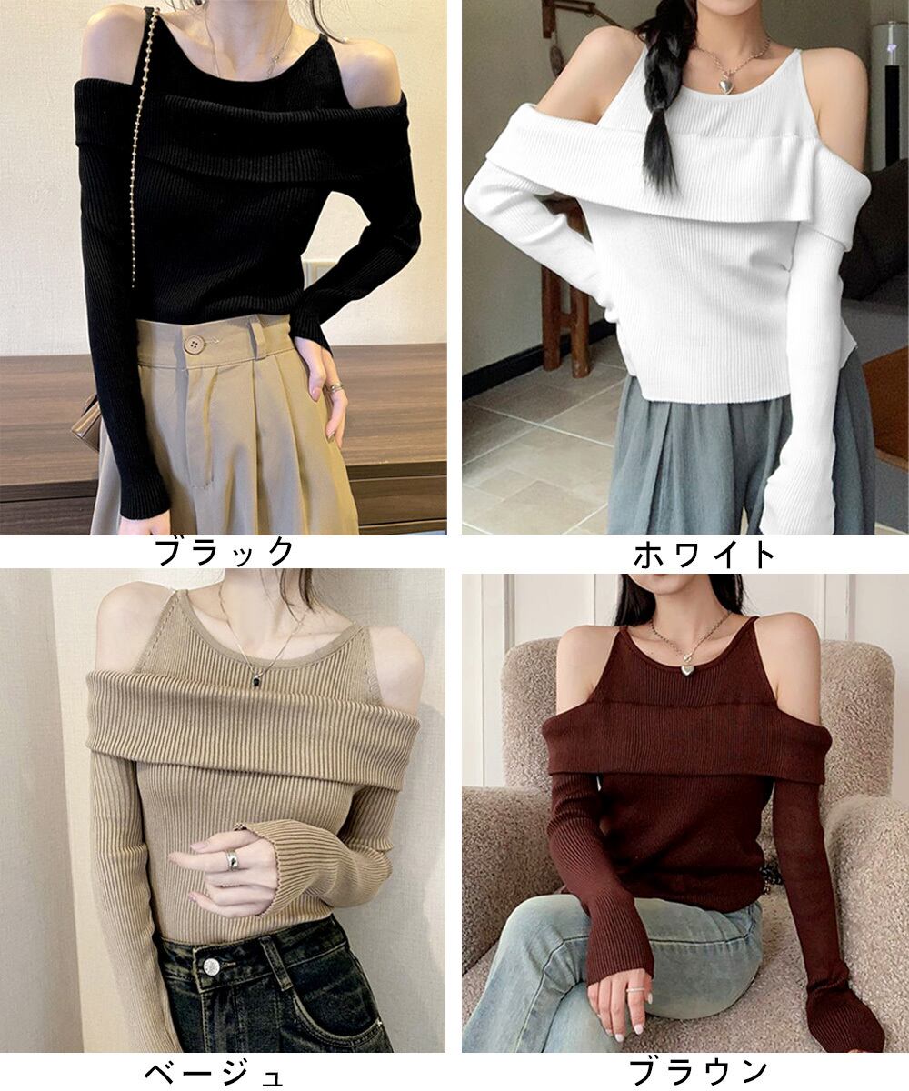 肌見せ 秋冬 ニットトップス オフショルダー セーター 韓国ファッション 長袖ニット おしゃれ ストレッチセーター