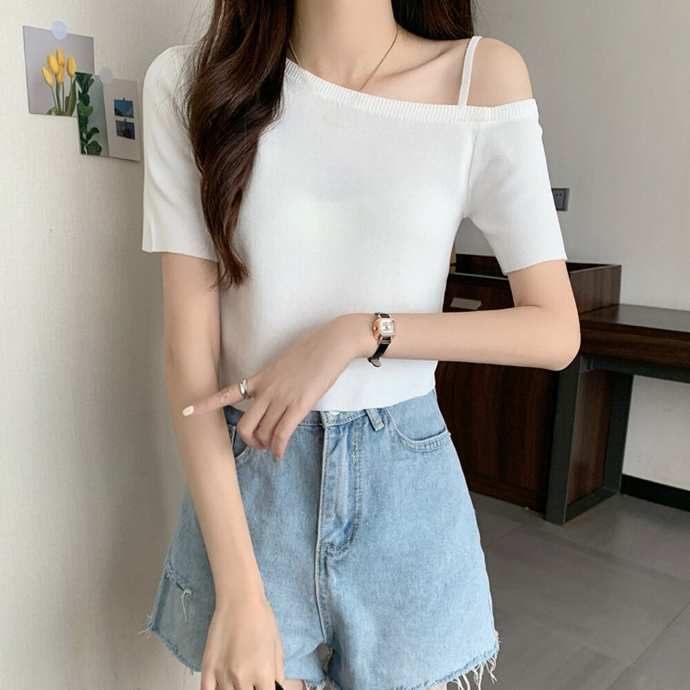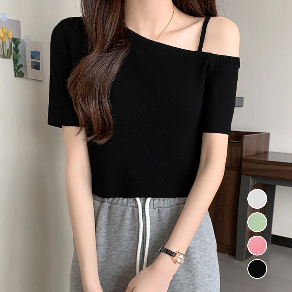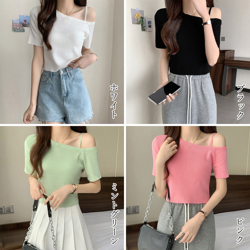 肌見せ ニットトップスワンショルダーサマーニット レディース 肩出し リブニット オフショルダー カジュアルニット 肌見せ