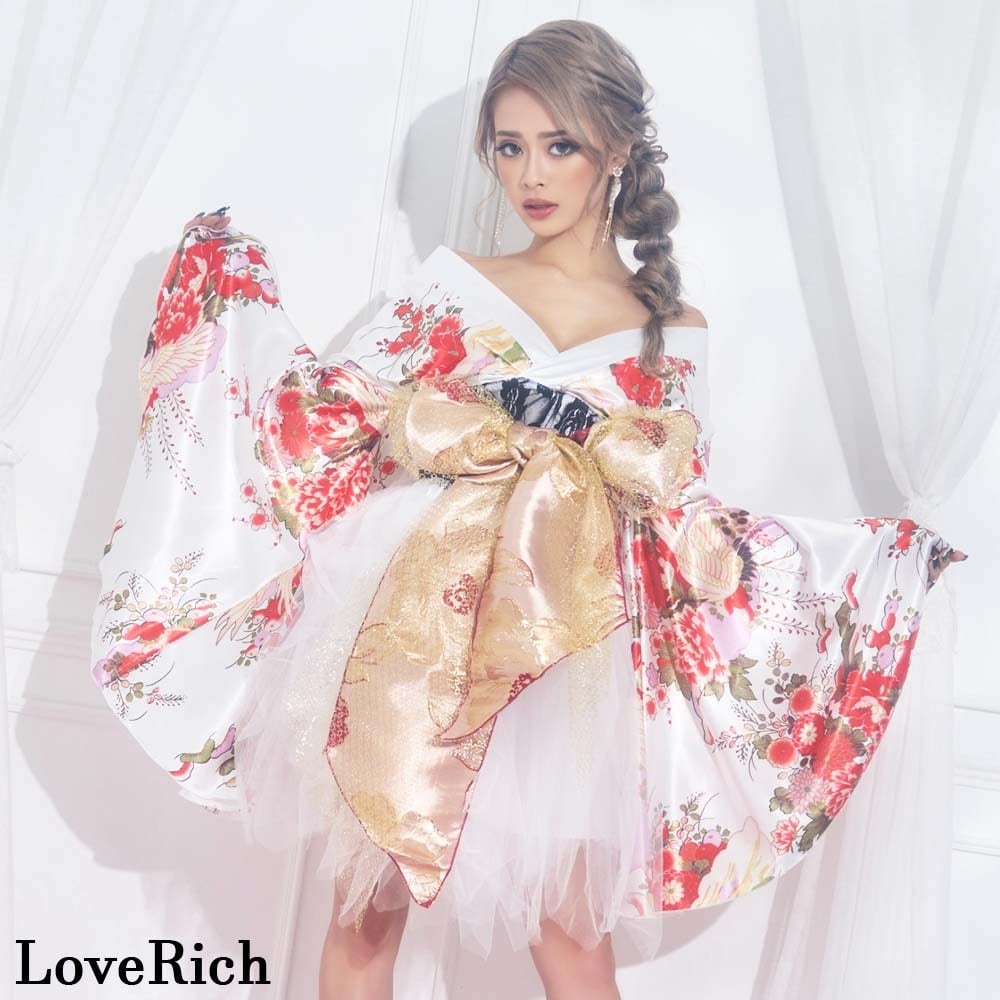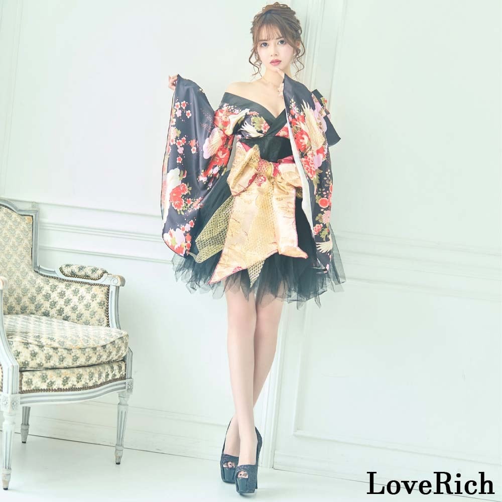 和柄 パニエ ミニ 着物ドレス ツーピース 豪華 花魁 着物 コスプレ イベント キャバドレス