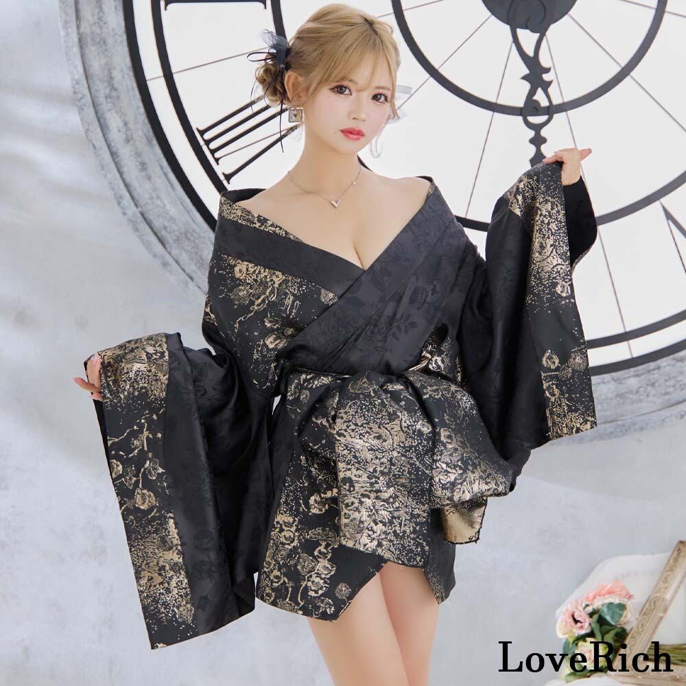 和柄 花柄 オフショル 着物ドレス ミニ 豪華 帯 リボン 花魁 コスプレ イベント ハロウィン