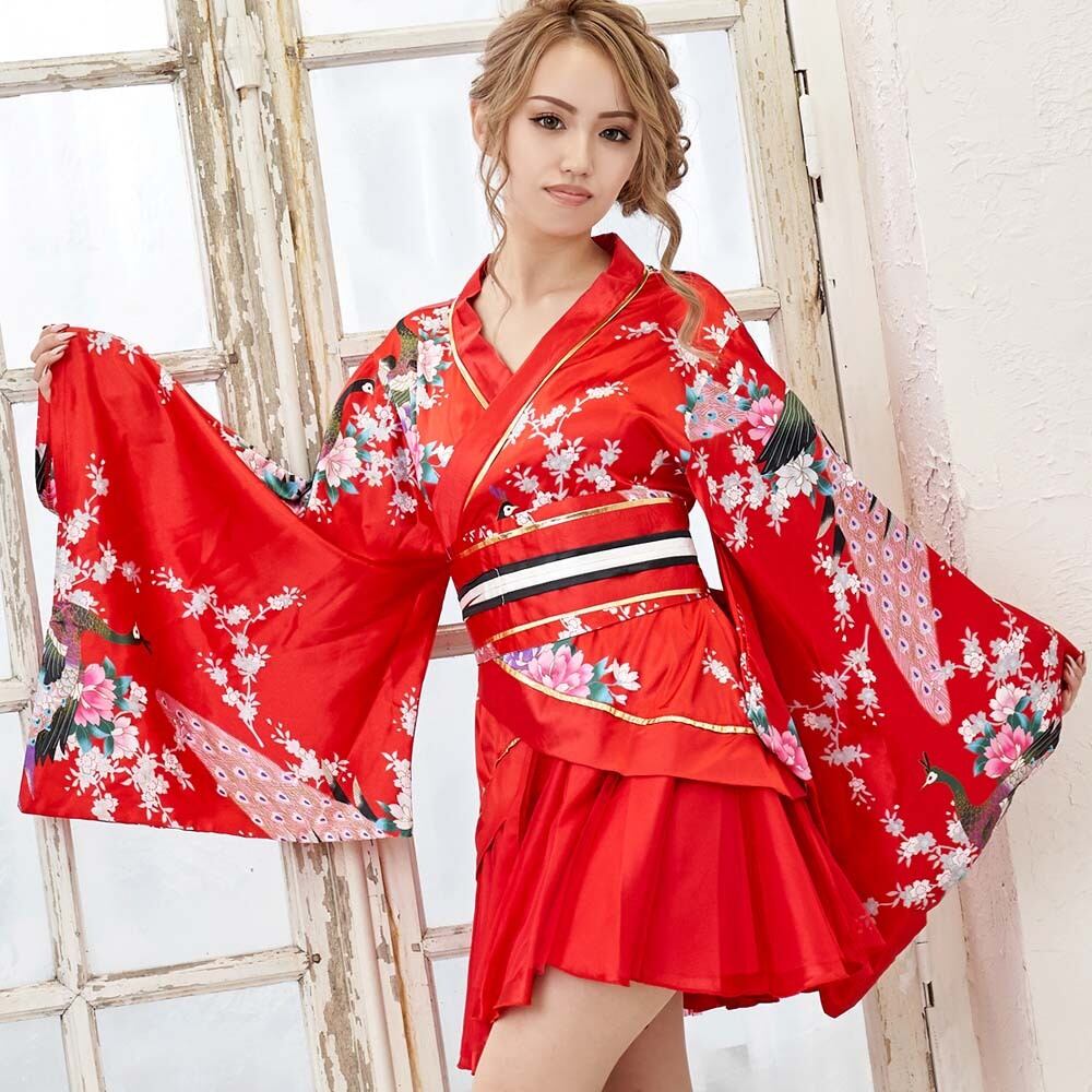 サテン和柄豪華花魁ミニ着物ドレス 和柄 よさこい 花魁 コスプレ キャバドレス ダンス よさこい ハロウィン