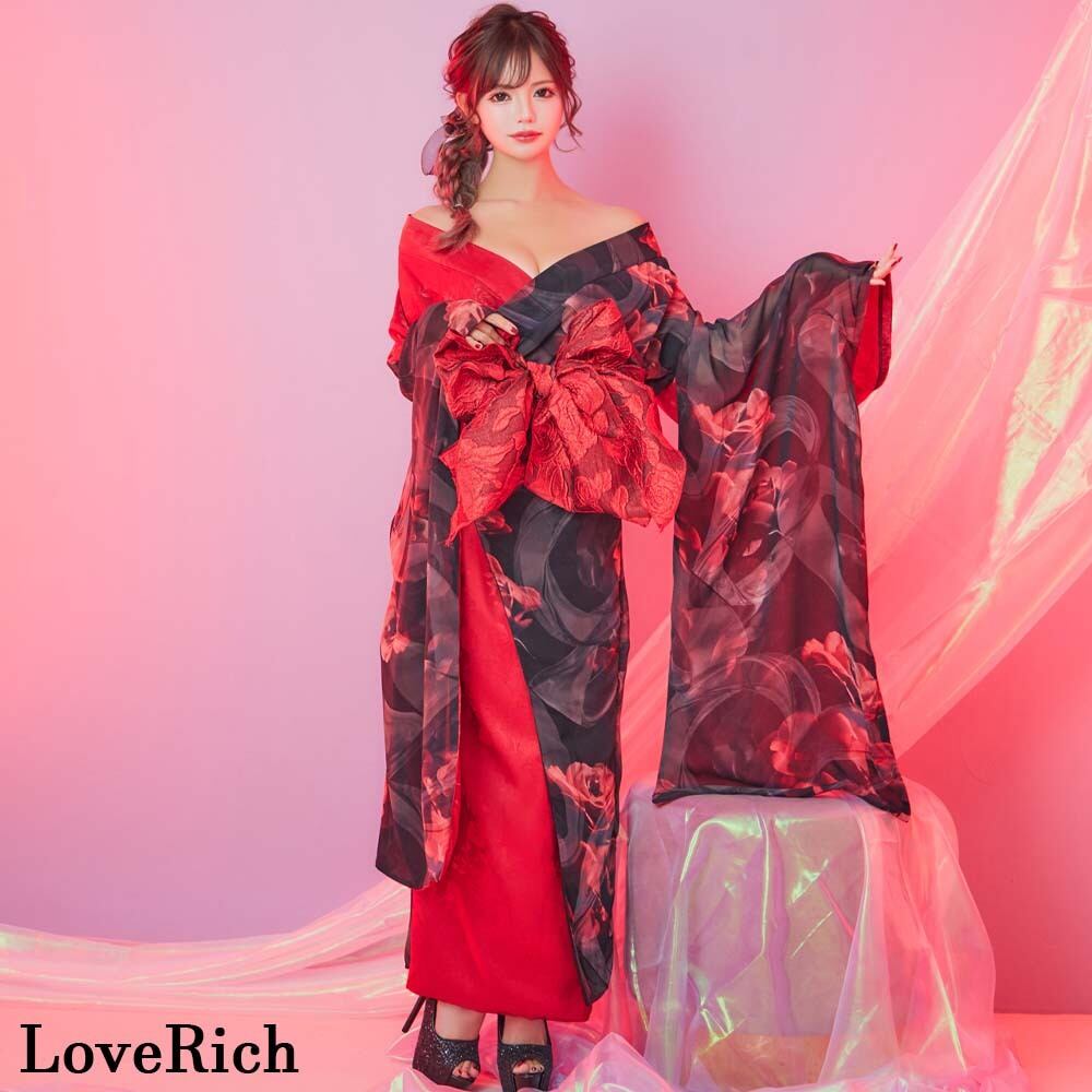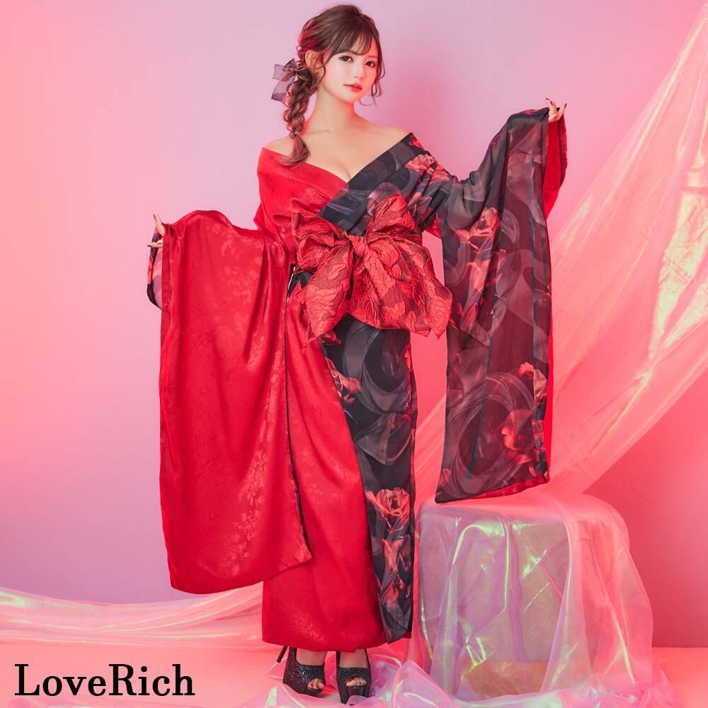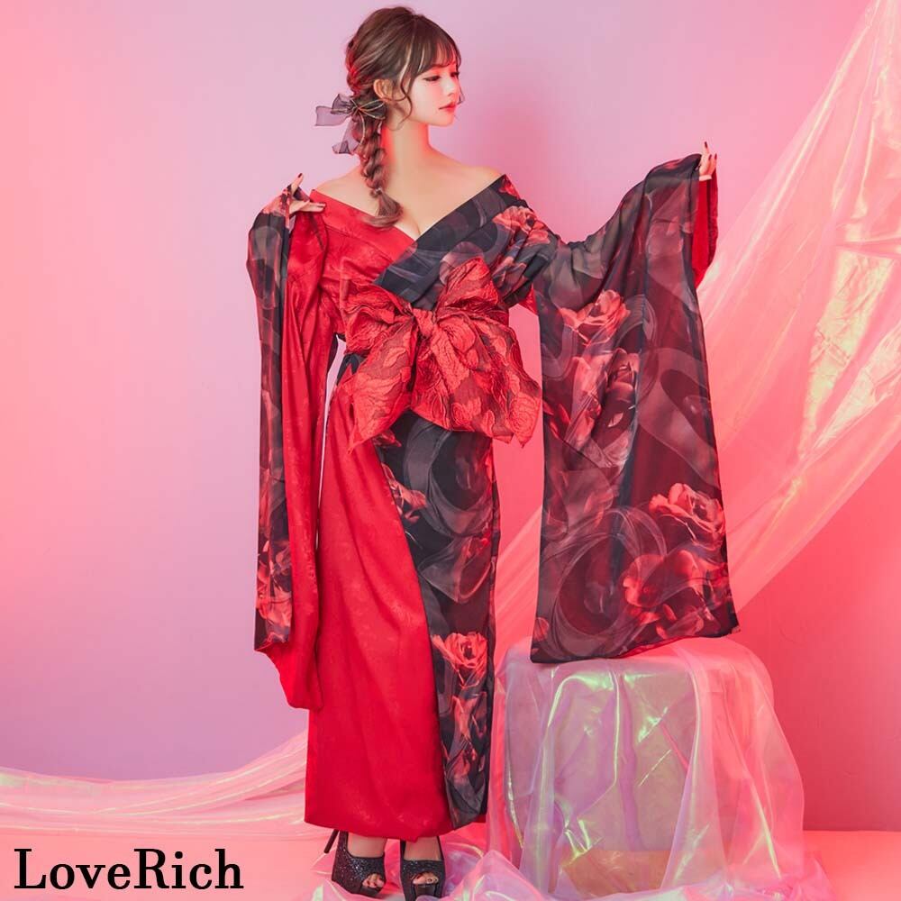 バイカラー ロング着物ドレス 衣装 ツートン 豪華 帯 花魁風 コスプレ イベント ハロウィン キャバドレス