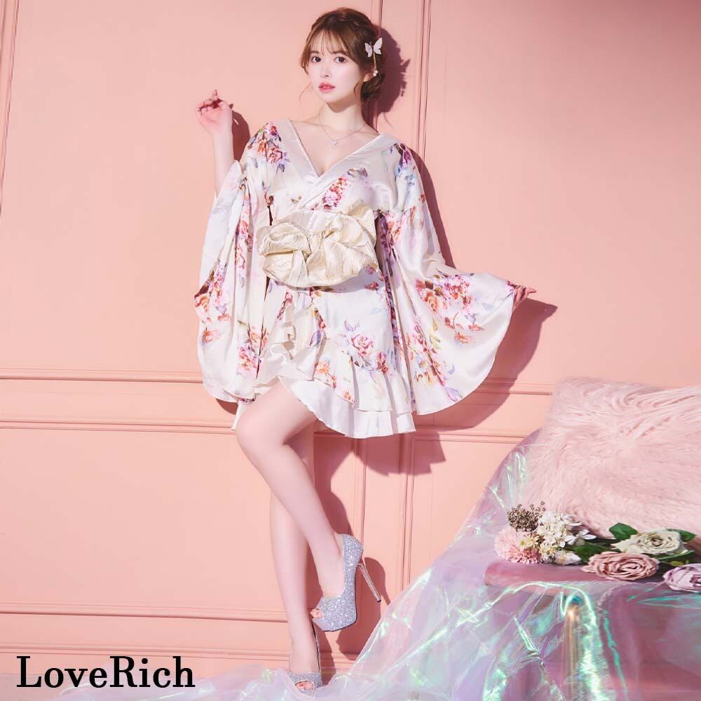 花柄 ミニ着物ドレス フリルデザイン オフショル 豪華 帯 リボン 花魁 コスプレ イベント ハロウィン