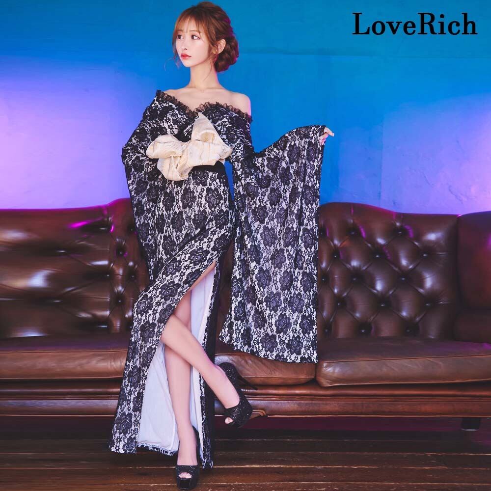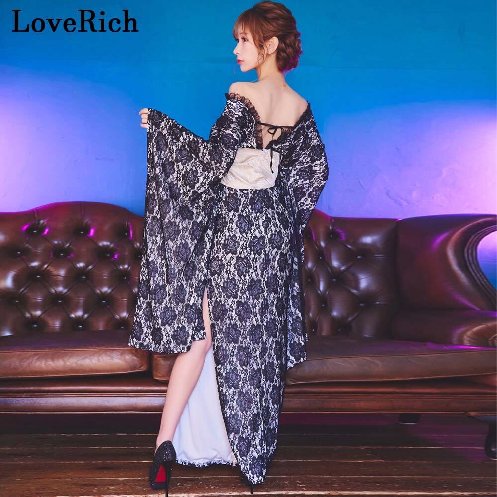 総レース 着物ドレス ロング スリット オフショル 美脚 豪華 花魁ドレス コスプレ イベント ハロウィン
