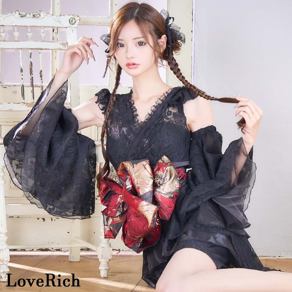 花柄レース フレアスリーブ ミニスカート ロング 豪華 花魁 着物 ドレス コスプレ イベント ハロウィン クリスマス