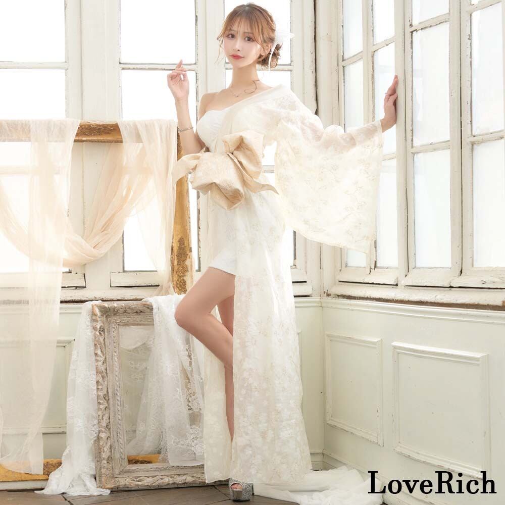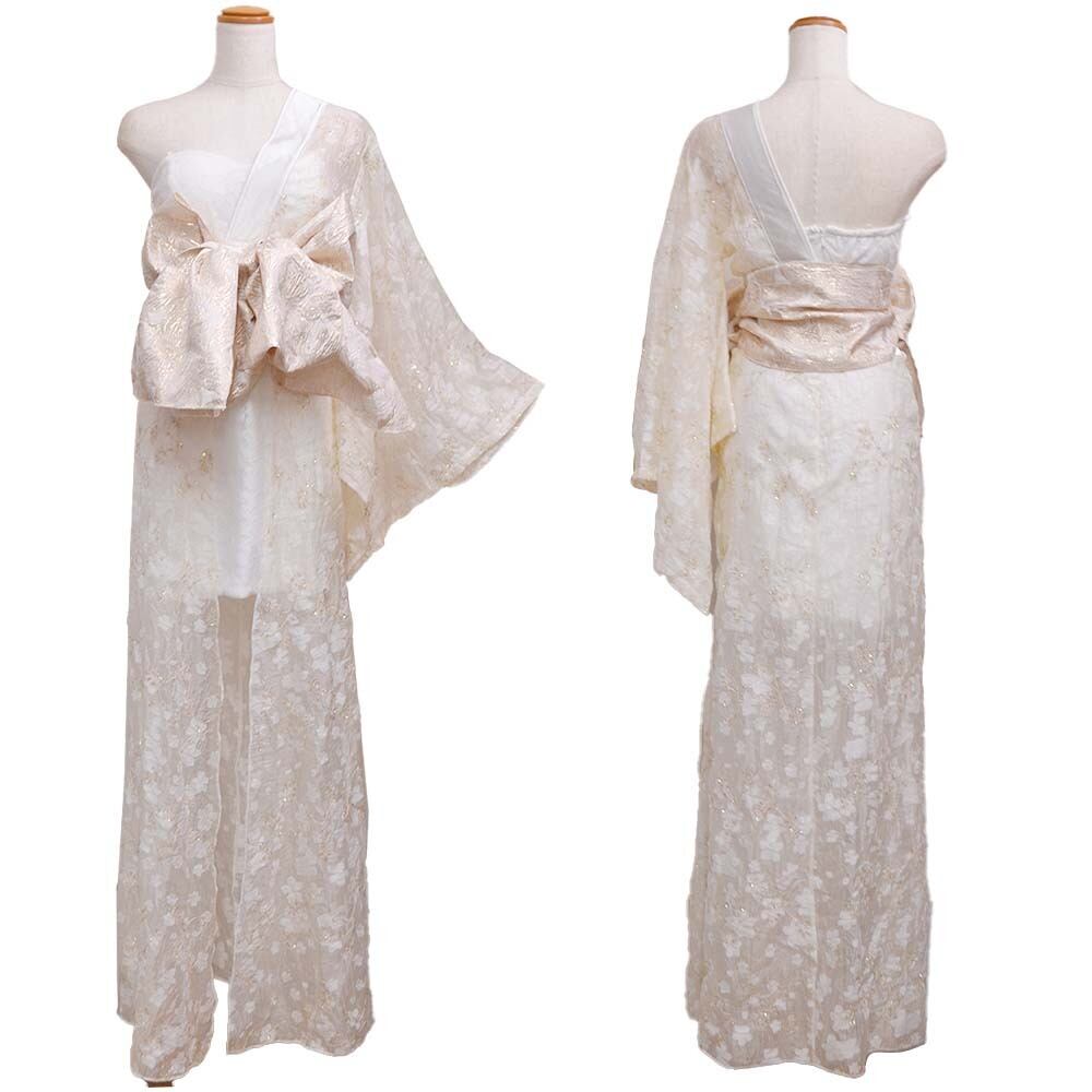 ワンショル 刺繍 レース ロングinミニスカート 花魁 着物 ドレス コスプレ ハロウィン キャバドレス